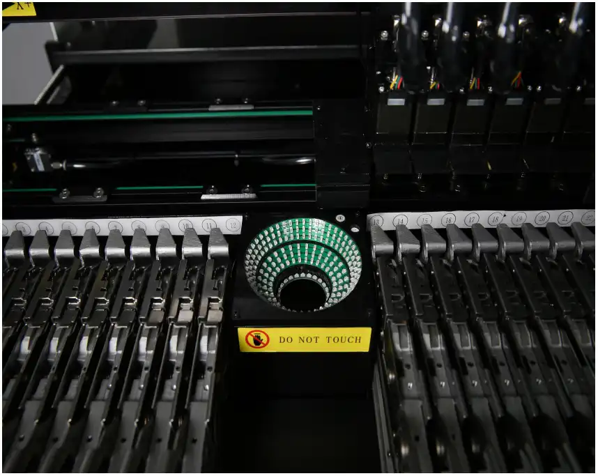 Neoden 9 SMD dizgi makinesi, yüksek hassasiyetli hareketli hizalama kamerası, çift fiducial kamera ve 6 dizgi kafası ile yüksek doğrulukla ortalama 9.000 cph dizgi hızına erişmektedir.